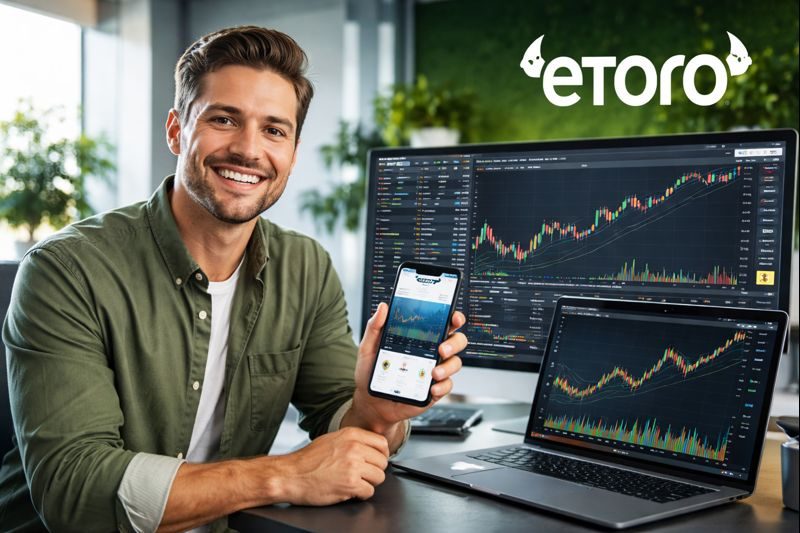 Auf eToro kannst du Aktien ohne klassische Brokerprovisionen kaufen und langfristig halten oder aktiv traden.